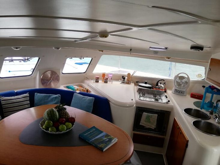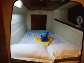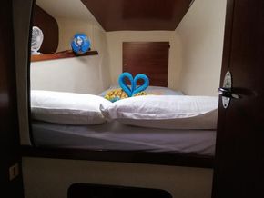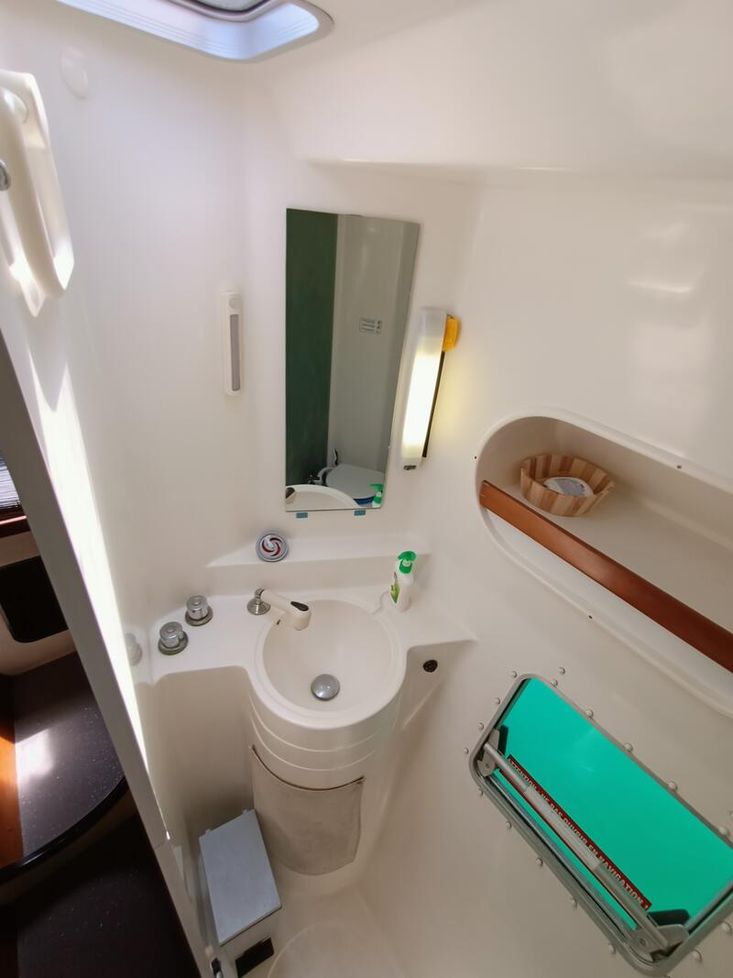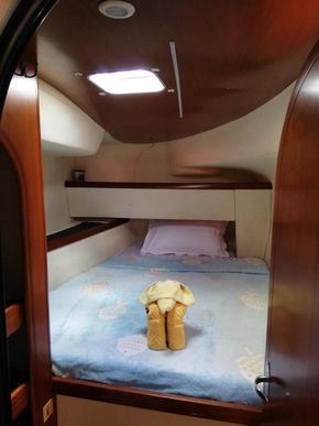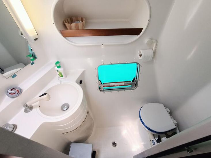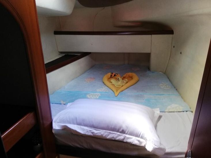 This boat offer 4 cabins for 8 persons, plus crewcabin, 2 heads, additional shower outdoor, or superiour living space, it also gives you the possibility to sail all wind conditions